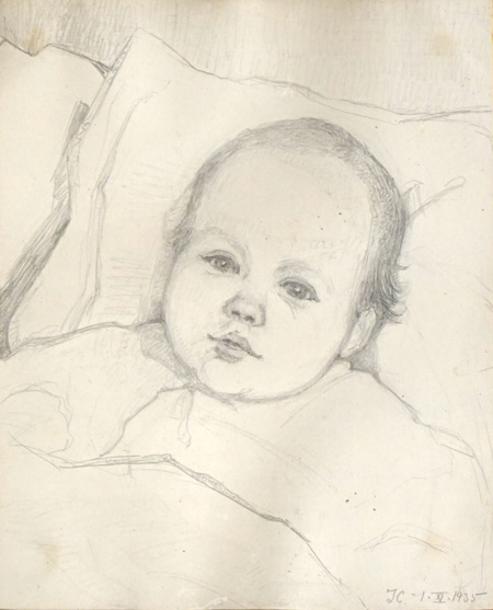Ingeborgs barnebarn Erik malet af Ingeborg Balslev Clausen i 1954 i Ollerup.