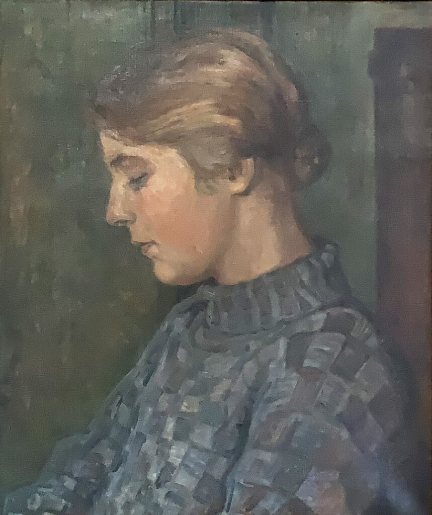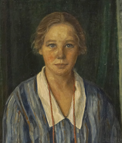 Portræt af Eva Signeret I C 1924. Bredde 54 cm, højde 64 cm Malet af Ingeborg Clausen, født Brandt.